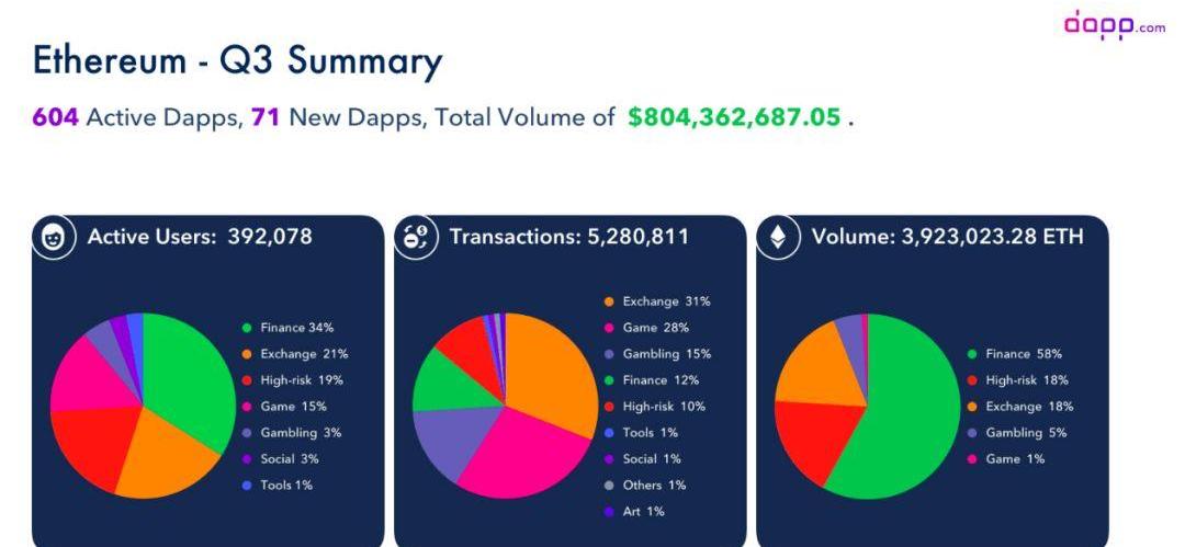不过尽管如此,根据dappexplorerDapp.com的最新季度分析报告显示,还是有超过一半的交易与加密货币有关。