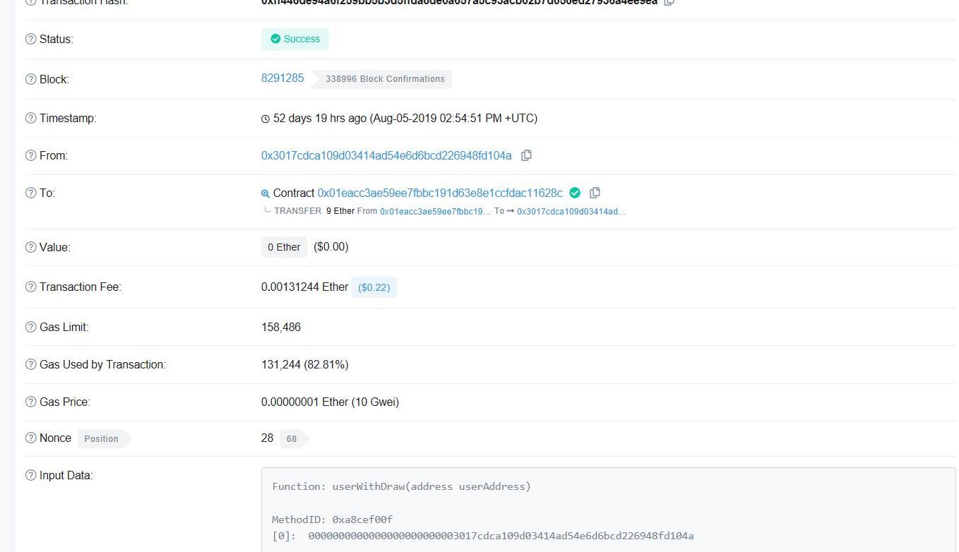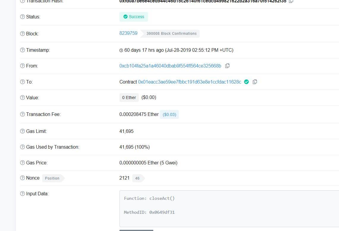 通过进一步分析其合约部署情况发现,在项目方关闭actStu的前一天,也就是2019年7月27日,项目方刚刚部署FAIRWIN合约,在短短一天时间不到之内,项目合约之内便无中生有了5000多个ETH。7月29日,以太坊浏览器显示合约进行了开源。