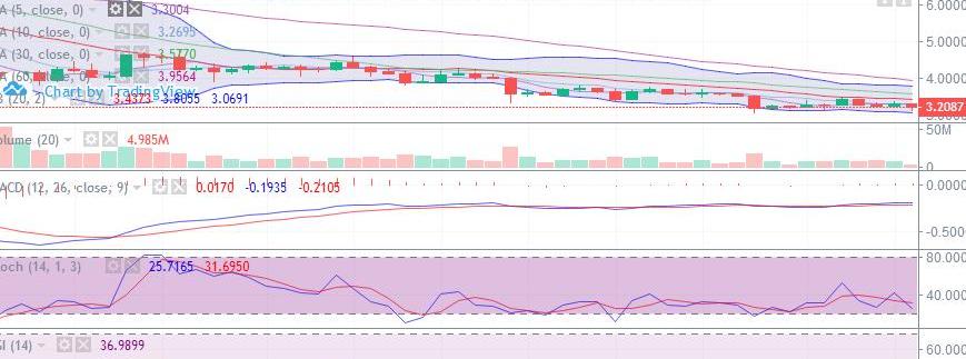 EOS跌势收与3.1位置,前期的支撑点,后续的下行空间不会太多,那么关注3.0-3.1有效支撑位,若未能打破,逢低可适量布局等待反弹机会,当前是一个下行趋势,保持空单为主的思路,整体走势还是处于震荡的节奏中,后续还会给到反弹的机会,把握关键点位的入场机会。