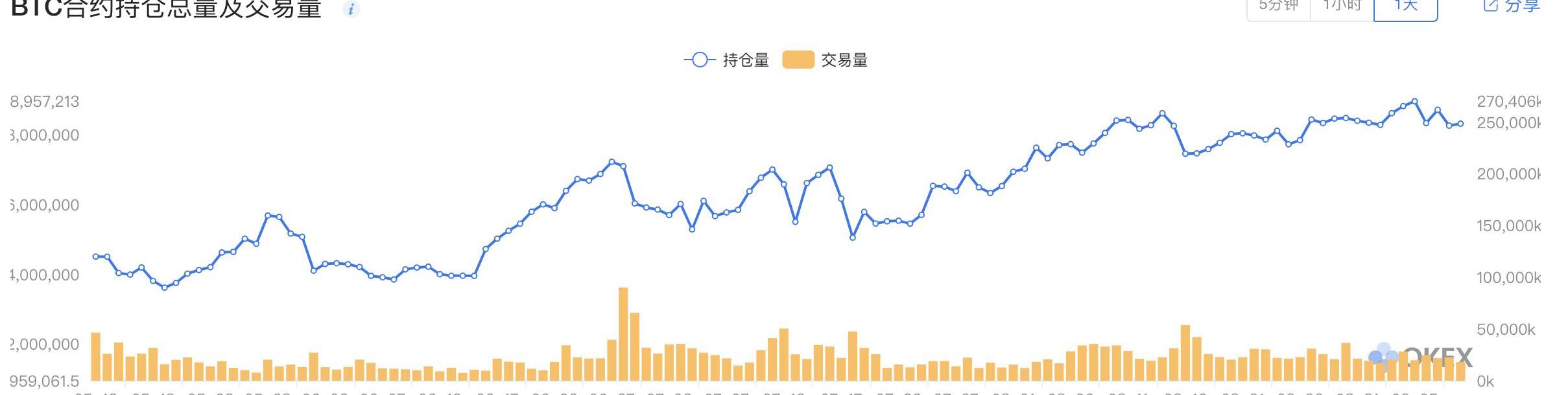 OKExBTC合约持仓总量及交易量