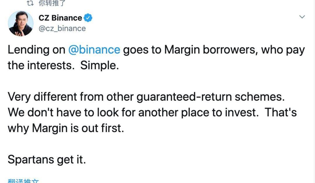 币安CEO赵长鹏补充道,保证金借贷者将支付币安宝的利息。这和其他保证收益的计划截然不同。我们不需要寻找其他的投资渠道。