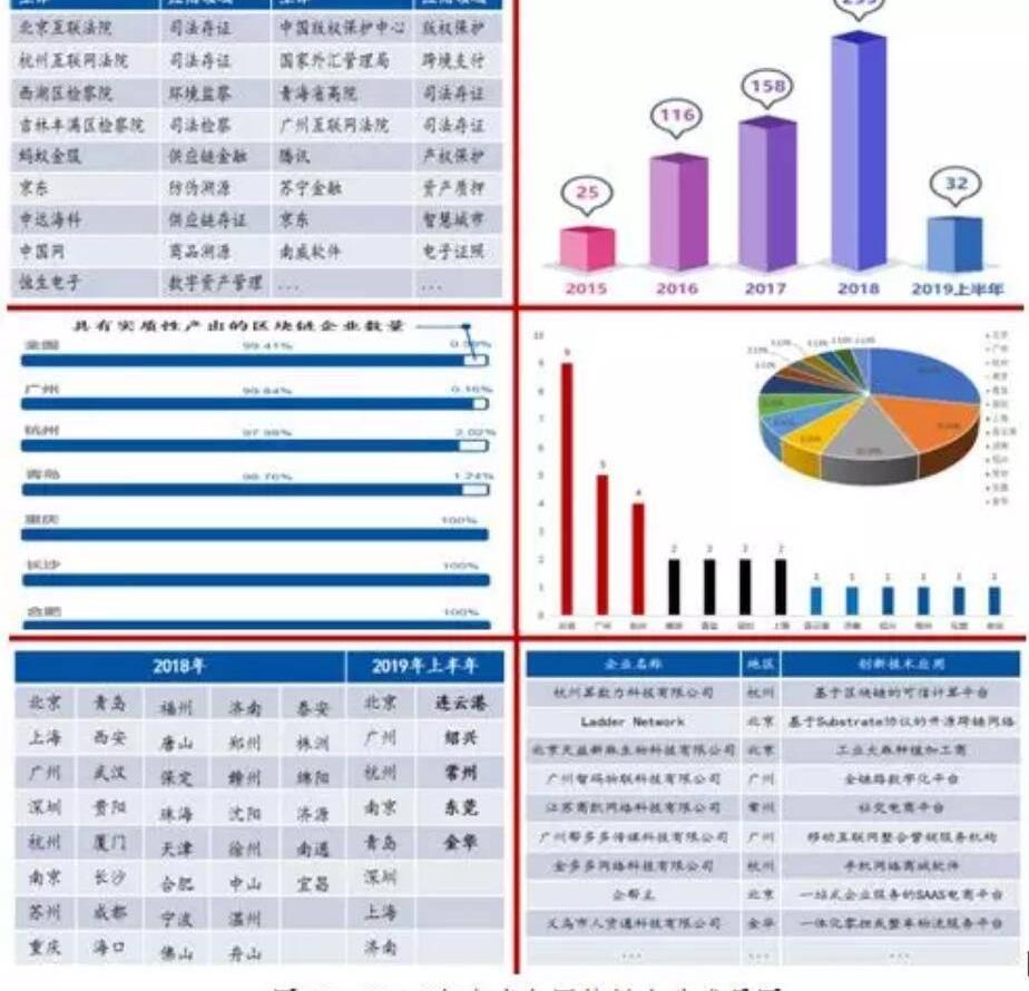 四是聚集要素逐渐积累,产业园区不断壮大。截至到2019年上半年,全国已经成立或者在建的区块链产业园区已经覆盖上海、杭州、宁波、广州、青岛、重庆、武汉、长沙、南昌、海口、赣州、娄底、辽宁、南宁、唐山、新疆等全国五大地区,区块链产业园数量已达20余个。