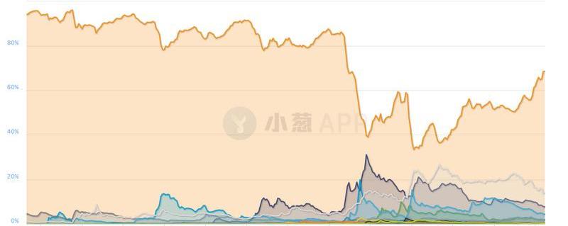 此外,比特币市值占有率仍在进一步攀升,币圈资金仍在持续流向比特币,当前其占有率已经逼近70%,创下2017年3月末以来的新高。