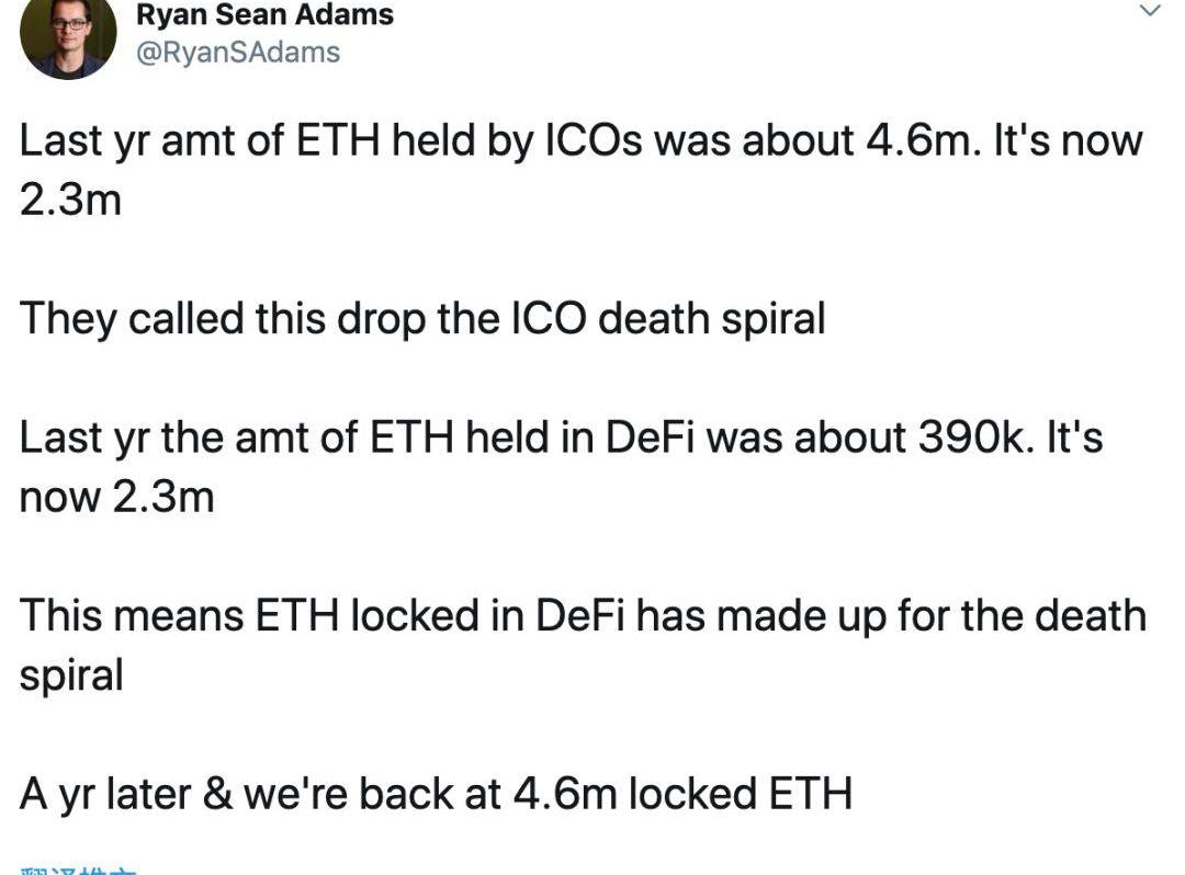这意味着DeFi里锁定的eth已经弥补了死亡螺旋。