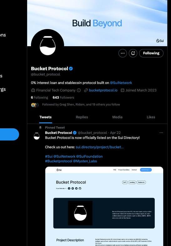 BucketProtocol是一个建立在Sui上的稳定币/借贷协议,虽然还没有上线主网,但他们在Suidemoday上获得了第二名。值得长期关注。