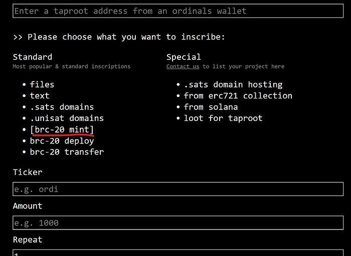 Inscribe将为文件、.sats、文本、BRC-20和.Unisat提供5种替代方案。