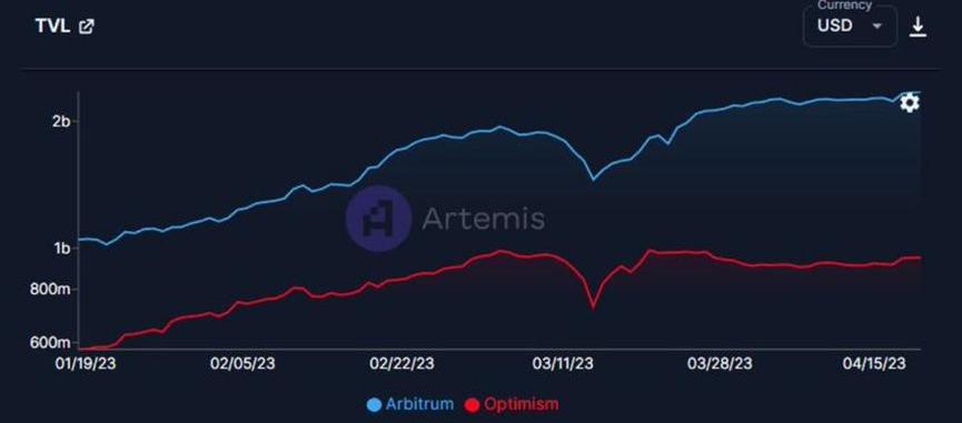 此后,Arbitrum的TVL增加了9%,而Optimism的TVL减少了3%。