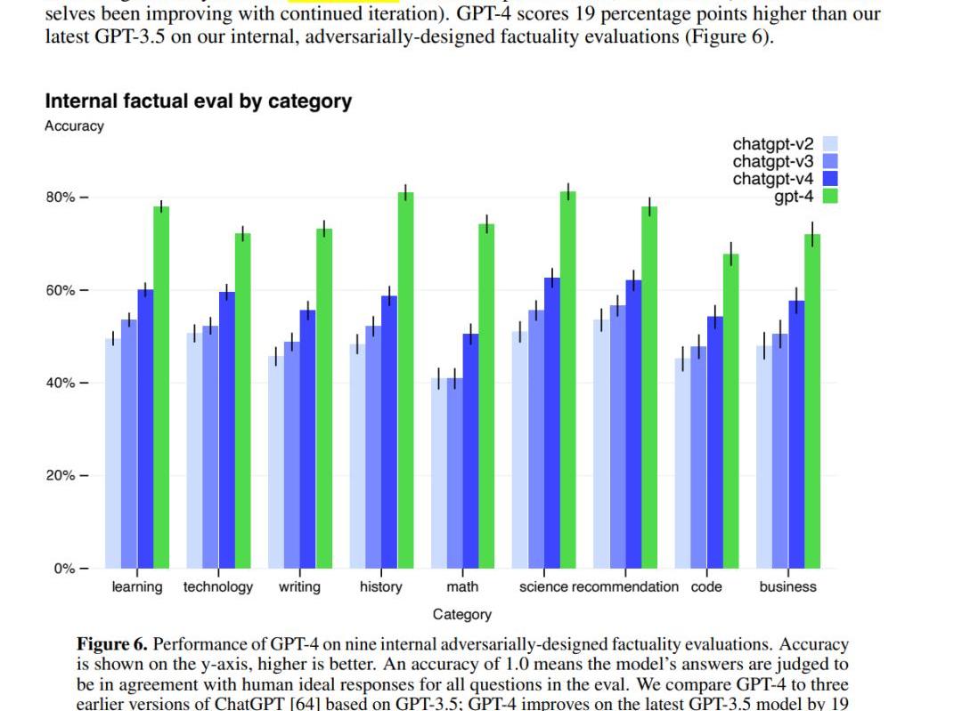 1.更可靠了为什么?详情可见OpenAI的GPT-4TechnicalReport具体意思是,和以前的GPT-3.5模型相比,GPT-4大大减少了胡说八道的情况。