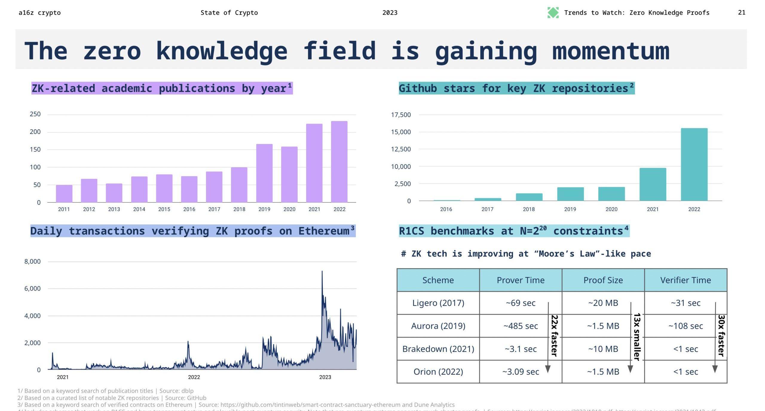 在过去的一年里,我们看到了“零知识”系统领域的快速进展——这些强大的基础技术解锁了区块链的可扩展性,同时新的用例激增,包括保护隐私的应用和可验证的计算,可以实现去中心化机器学习/AI.这些系统涉及证明或验证一组事实是真实的密码学方法,而不透露关于这些事实的任何信息。