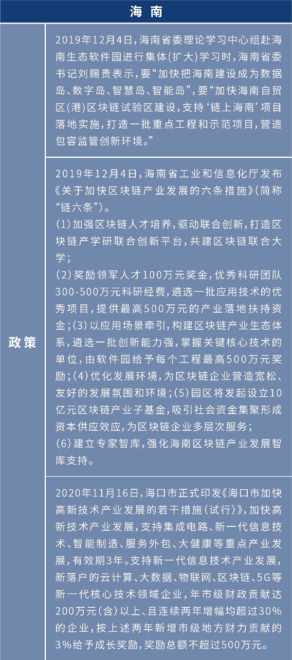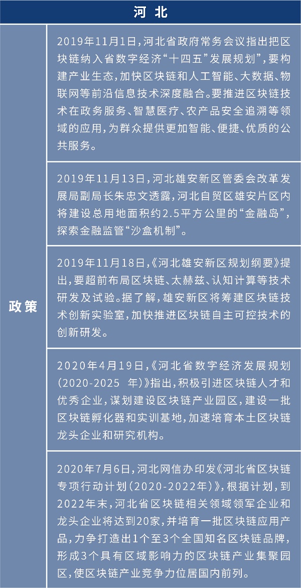 2019年10月24日,中共中央局就区块链技术发展现状和趋势进行第十八次集体学习,中央领导强调:区块链技术的集成应用在新的技术革新和产业变革中起着重要作用,我们要把区块链作为核心技术自主创新的重要突破口,明确主攻方向,加大投入力度,着力攻克一批关键核心技术,加快推动区块链技术和产业创新发展。2020年4月20日,国家发改委明确了新基建的范围,“区块链”正式被列入新型基础设施中的信息基础设施,标志着国内区块链产业发展将迎来新一轮变革。
