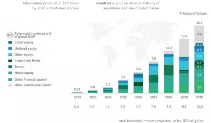 看看最新的BCG报告。预计到2030年,代币化资产的价值将达到16万亿美元,占全球GDP的10%,这是一个非常保守的估计。