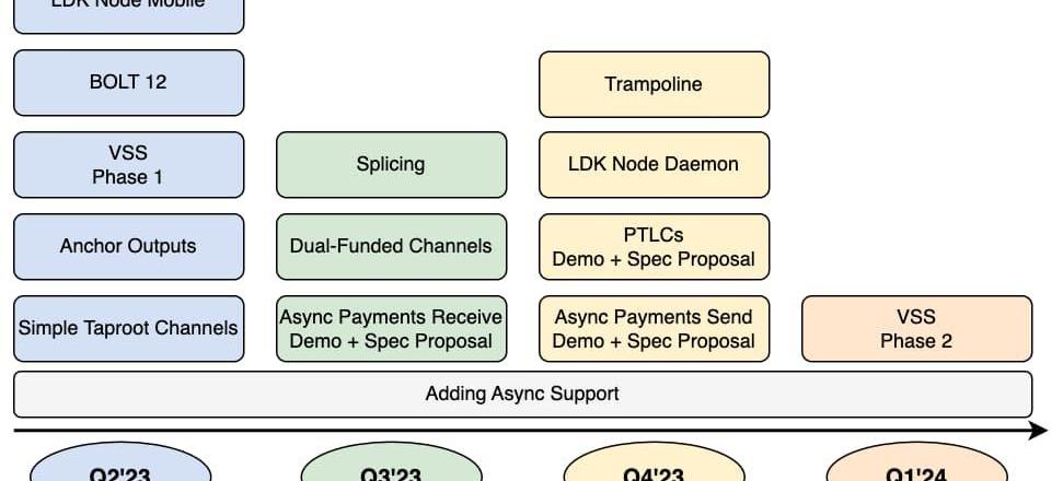 在本次路线图更新中,2023年Q2将聚焦于LDKNodeMobile,之后延续到2024年Q1,将主要致力于解决异步支付问题。不难看出,异步支付将是更难啃的骨头,因为会直接面向消费者提供功能服务,开发团队需要采取更加谨慎的态度。
