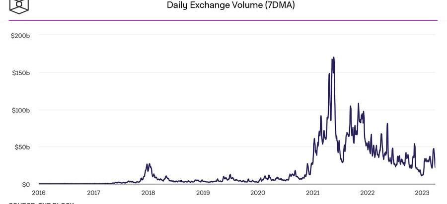 比特币流动性也在恶化。即使比特币的价格表现优秀,但因为美元支付渠道关闭和美国加密友好银行的危机,美国做市商的业务开展受到极大挑战,比特币的流动性逆市场走势下降,比特币交易的价差和滑点都在增加。