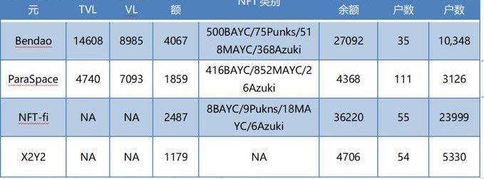 借贷的收入来自借款人,蓝筹NFT本身就是一个高净值市场,用户群体的资金成本较低,对于NFT借贷并没有太高的需求,Bendao的借贷需求受到了挖矿的刺激,Paraspace的大部分在贷余额来自APE,点对点模式的NFTfi和X2Y2相对来说需求比较真实,也很小。