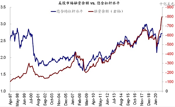 实际利率上行除了隐含扣除价格因素的实际回报率抬升外,也意味着真实的融资成本的边际走高(虽然目前依然明显为负,10年期-0.61%),那么实际利率走高对资产价格的含义是,一方面不利于黄金,另一方面也会对边际上高估值部分带来边际上更大的压力,特别是交易拥挤、浮盈过多、以及以来融资杠杆较高的部分。