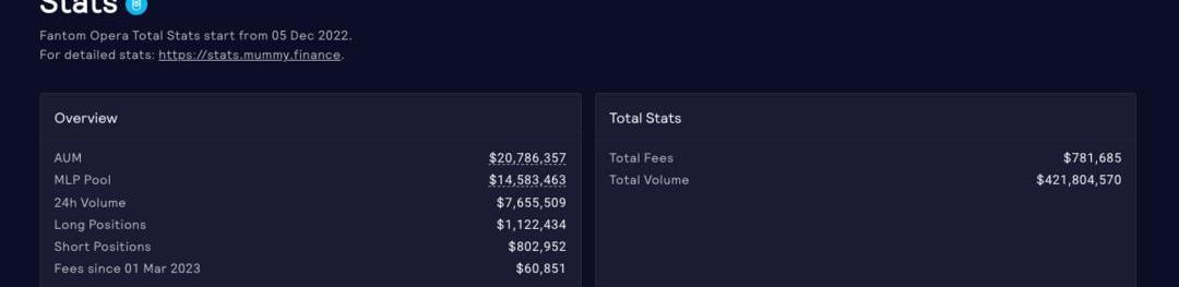 截至目前,Mummyfinance的平台交易量已超过4亿美金,MLP已有近1500万美金的TVL,产生了约78万美金的费用,数据并不亮眼。