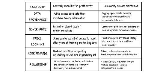 我试着在下面描绘出Web2和Web3之间在哲学上如何对待AI的差异。