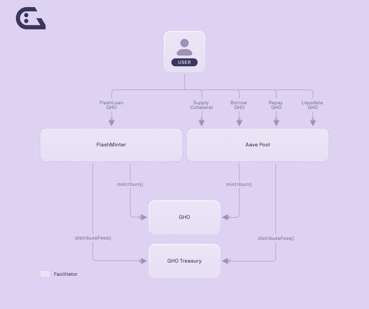 GHO的价值与美元挂钩,是一种去中心化的多元抵押稳定币。用户或借款人可以在Aave协议上使用他们提供的抵押物来铸造GHO代币。抵押物可以是用户自己选择的一篮子加密货币。当Aave的贷款服务用户将加密货币作为抵押品借入GHO时,Aave就会发行GHO代币。当贷款还清时,Aave会销毁与该贷款相关的GHO代币,从而减少协议中的代币数量。GHO代币可以用于支付、借贷等场景,并且可以产生收益,因为它们会自动参与Aave协议上的流动性挖矿。