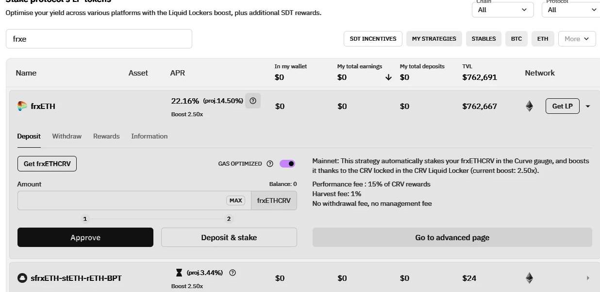 如果你将frxETH存入StakeDAO,该协议会将其存入Curvegauge,,并通过锁定在CRVLiquidLocker中的CRV来进一步提高激励。