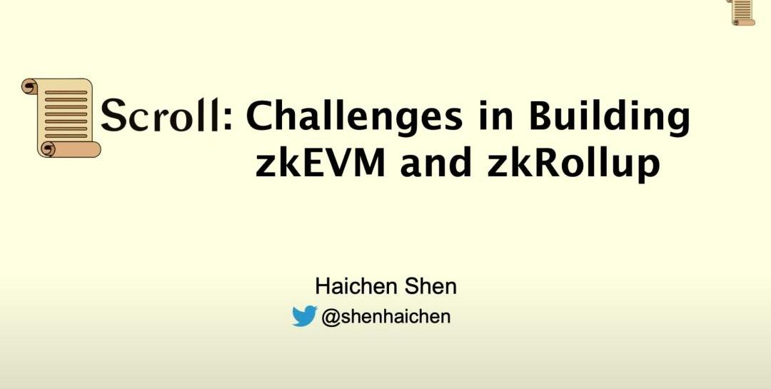 在ETHDenver的Devtopia舞台上,Scroll的联合创始人HaichenShen发表了主题为Scroll构建zkEVM和zkRollup的挑战的演讲,并同步了最新Alpha测试网的情况。