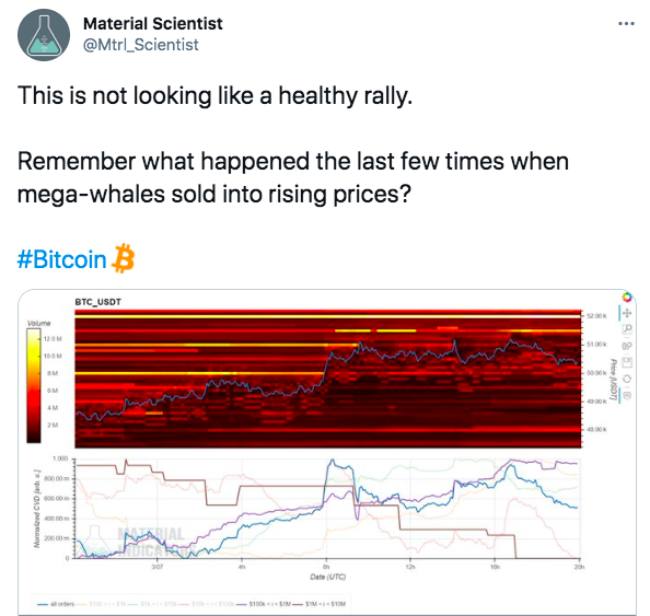 在推特上,Material Indicators在一张图表上评论道:“10万美元至100万美元的订单现在也将创建一个新的ATH。”