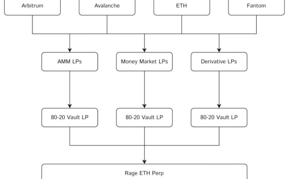 RageTrade是一个基于Arbitrum生态的永续合约,并且已经确定有发币计划;产品通过Omnichainrecycledliquidity机制整合来自其他链的Defi流动性并进行80-20Vaults。80-20Vaults是ETH-PERP的策略,80%资金在协议中进行生息,而20%提供流动性。另一业务线是稳定币产品,RageTrade进行了分层,Risk-On执行GLP对冲策略,而Risk-Off借U给Risk-On扩大规模。