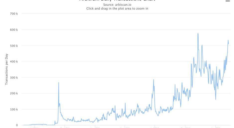 首先ArbitrumOne每日交易量同比增长600%;自2月初,ArbitrumOne处理主网40-50%的交易,与L1相比,平均成本降低了近97%。