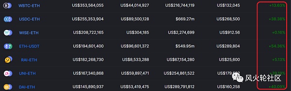 现在很多资金愿意去各种流动池做市,一个是大部分DEX平台都有给做市商手续费分润的机制,像宇宙级平台uniswap上几个主交易对光这部分年化现在就能做到四五十个点: