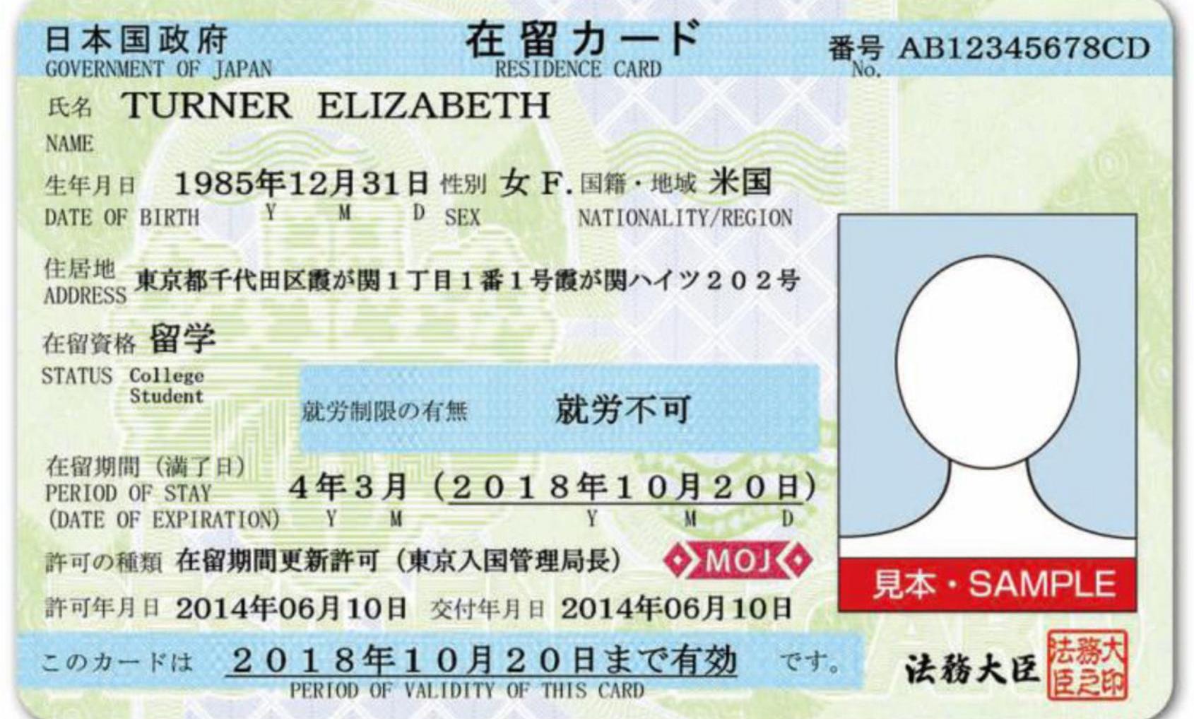 落地日本之后,一次性的入境签证使用完毕即失效,在出机场海关处就拿到了在留卡。在留卡就是在日本生活的ID,根据日本法律,需要随身携带。
