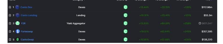值得一提的是,由于Y2R机池的TVL基本都来自于CantoDEX的LP,所以进行了扣除调整。目前该平台的LP挖矿收益很高。