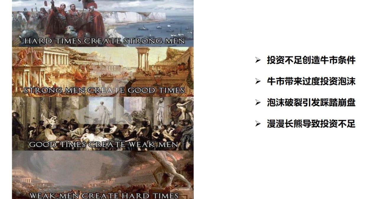 我们通常讨论的周期,实际上都是中等规模的周期,更大程度上是由货币面驱动和行业发展叙事形成共振导致的牛熊周期切换。