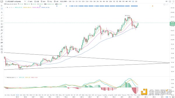 和大盘一样,震荡待短期均线拐头后延续反弹,近期大概率仍以反弹为主,上方近期压力1700美金,有效突破下一压力1850美金,短期支撑1450美金,趋势支撑1300美金,大方向依旧多头趋势,后续再创历史新高将是大概率,中长线可耐心持有。