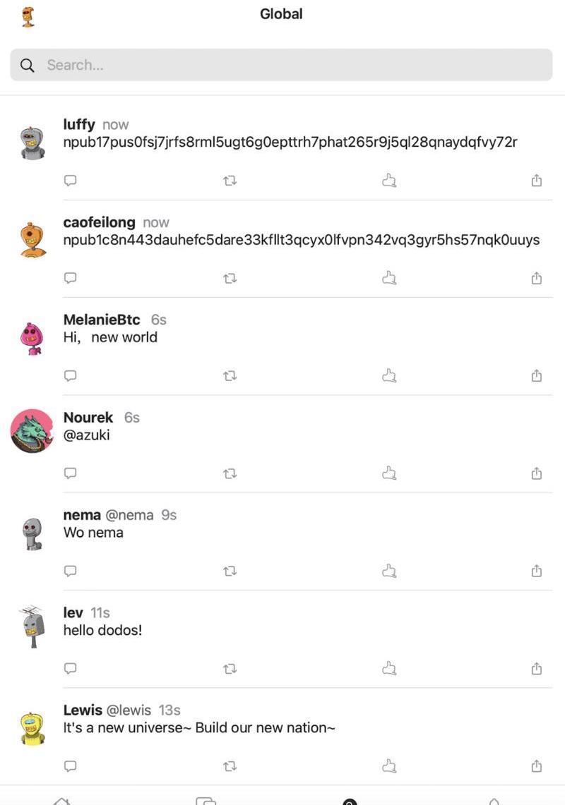 从产品体验来看,这一产品在感知上对于用户来说与Web2Twitter?是差异无几的。拥有社交媒体所必须的一些基础功能,比如主页、私信、搜索、通知。而该?App?也为用户提供了探索全球最新更新的信息流的入口。