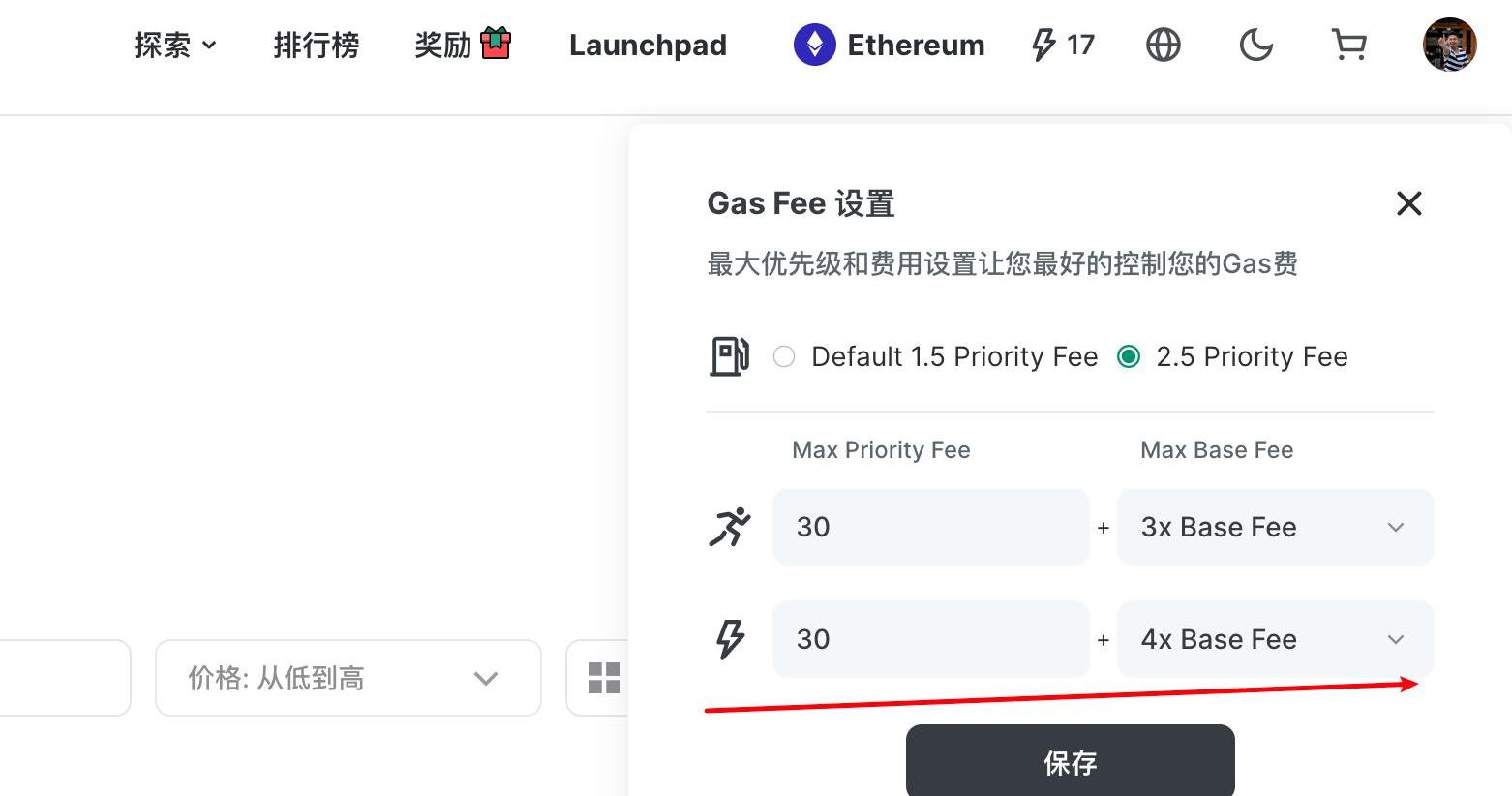 四.抢货时支持自定义gas费,方便用户快速抢到喜欢的NFT