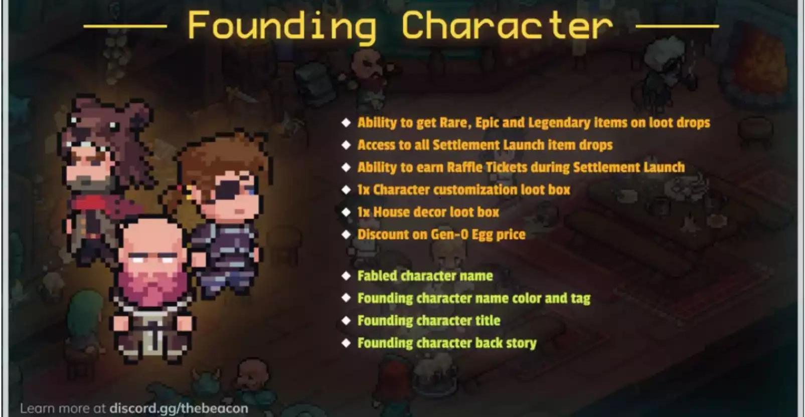 TheBeacon是由TreasureDAO在Arbitrum链上发行的像素风Free2Play动作角色扮演游戏,游戏玩法包括单人闯关、组队冒险、休闲装扮等。目前正处于结算启动阶段。目前向所有玩家开放游戏部分试玩,无论是否持有创世人物NFT都可以进入游戏并获得奖励,从11月25日开启,为期3周。活动同时开启创世人物NFT铸造,三周后开售0代宠物NFT铸造。