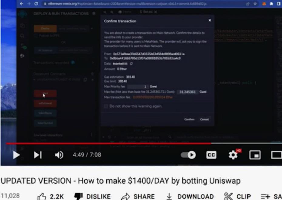 从本质上讲,视频引导用户使用RemixIDE部署他们的恶意代码,通常是在视频描述中的粘贴bin网址。