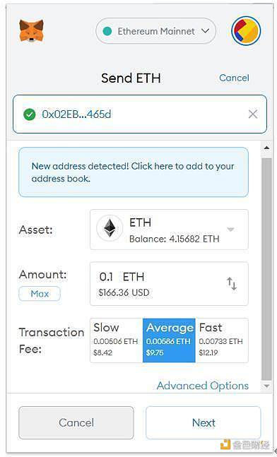 如果交易不是即时性的,用户可以检查跟踪工具,然后再返回自己的钱包选择首选的时间范围和相应的费用。例如,前面图中的MetaMask钱包有三种速度选择(慢速,平均或快速)。或者,有些提供“高级选项”钱包,用户可以输入愿意支付的最高Gas费,而不是接受这三个选项。