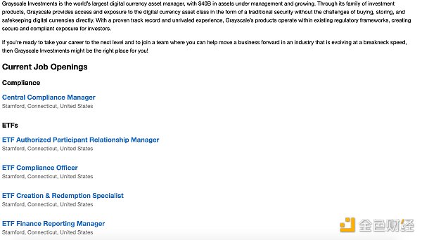 据官方推特消息,灰度发布了多项ETF相关的招聘信息,其中包括ETF授权参与者关系经理、ETF合规官、ETF财务报告经理、ETF财务支持经理、ETF做市商关系经理、ETF产品开发专家及ETF销售总监。
