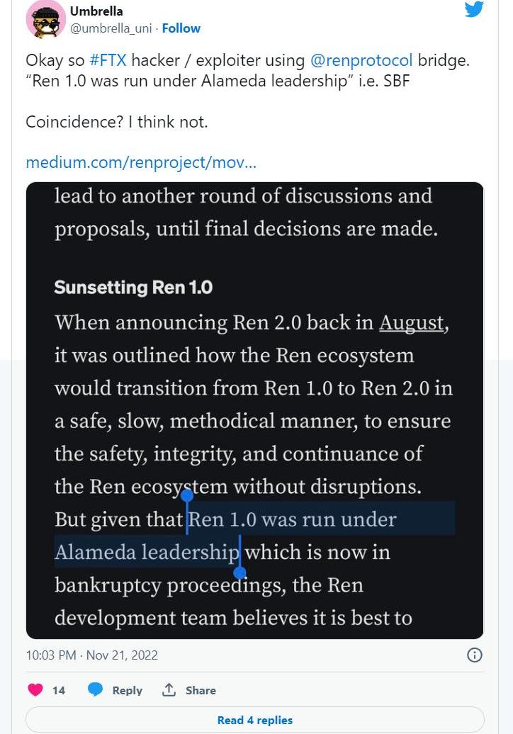 由于他们和Alameda的这层关系,导致开发团队的资金只能坚持到今年年底。目前团队正在筹集新的资金,同时加快新Ren2.0桥的计划,而Renv1将在30天后停用。