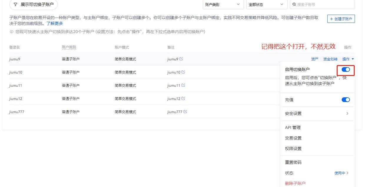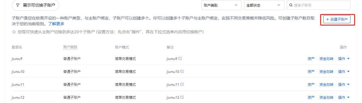 子账户设置起来成本并不高,之前大家都在FTX玩,现在它不行了,大家在币安和欧意玩得多一些,我们用欧意举例吧,更加亲们一些。
