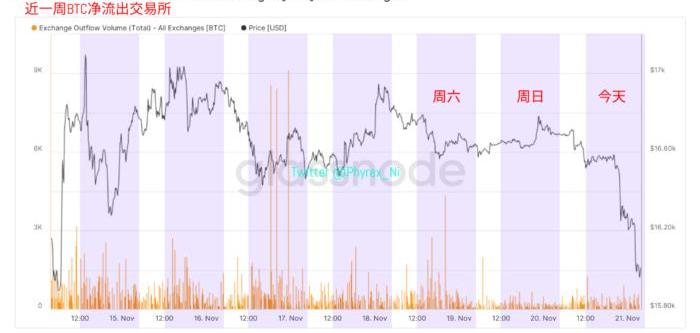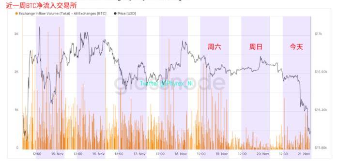 所以对于整体价格的下跌一方面是因为情绪面造成的恐慌抛售,另一方面也是因为周末做市商并不是火力全开,这点BTC的抛压量如果放在工作日并不会造成太大的波动。这种情况也像极了LUNA事件后在五月和六月连续两次都是在周六上午出现大幅度抛压导致价格下跌的状况,只是相比起来此次调动量都是来自FUD。