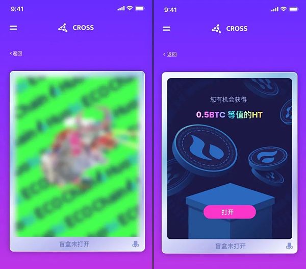 4.4个NFT盲盒中,只有1个盲盒内置0.5个BTC等值的HT;