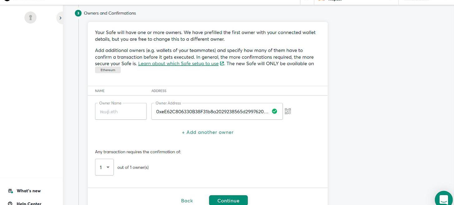 这是因为如果你有三个Ledger,你可以通过Safe创建一个有弹性的"最小可行"的多签名加密保险库,它将要求你的三个主要钱包中的任何一个至少有两个签名来确认任何交易。