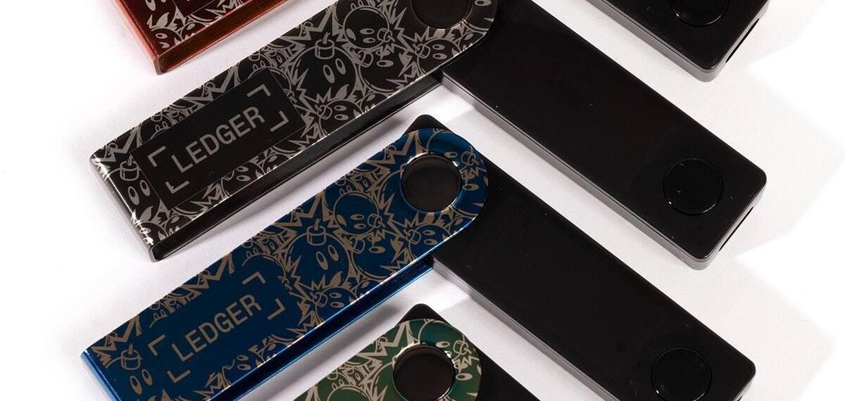 独家的NanoXLedger钱包,以AdamBomb的印刷为特色,生产的颜色对应特定的NFT“贴纸”特征