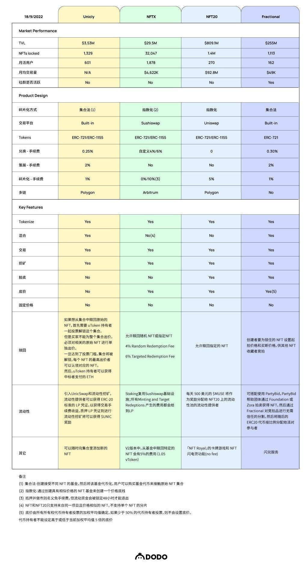 NFT碎片化代表产品:Unicly/NFTX/NFT20/Fractional