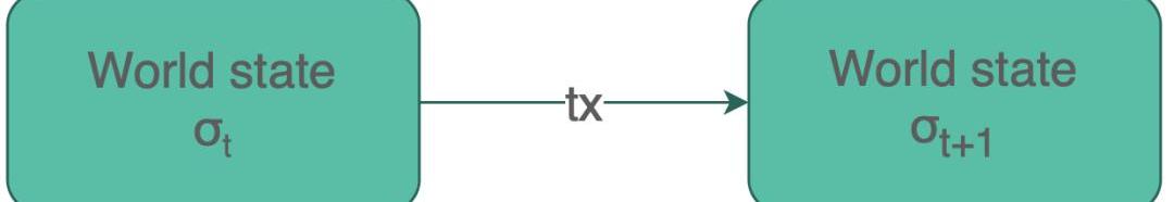 众所周知,EVM中交易的执行实际上是状态的转换,交易执行前的状态σt和交易transaction作为EVM的输入,输出为交易执行后的状态σt+1: