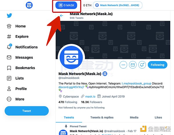 点击 Twitter 页面左上角的蓝色「MASK」按钮。
