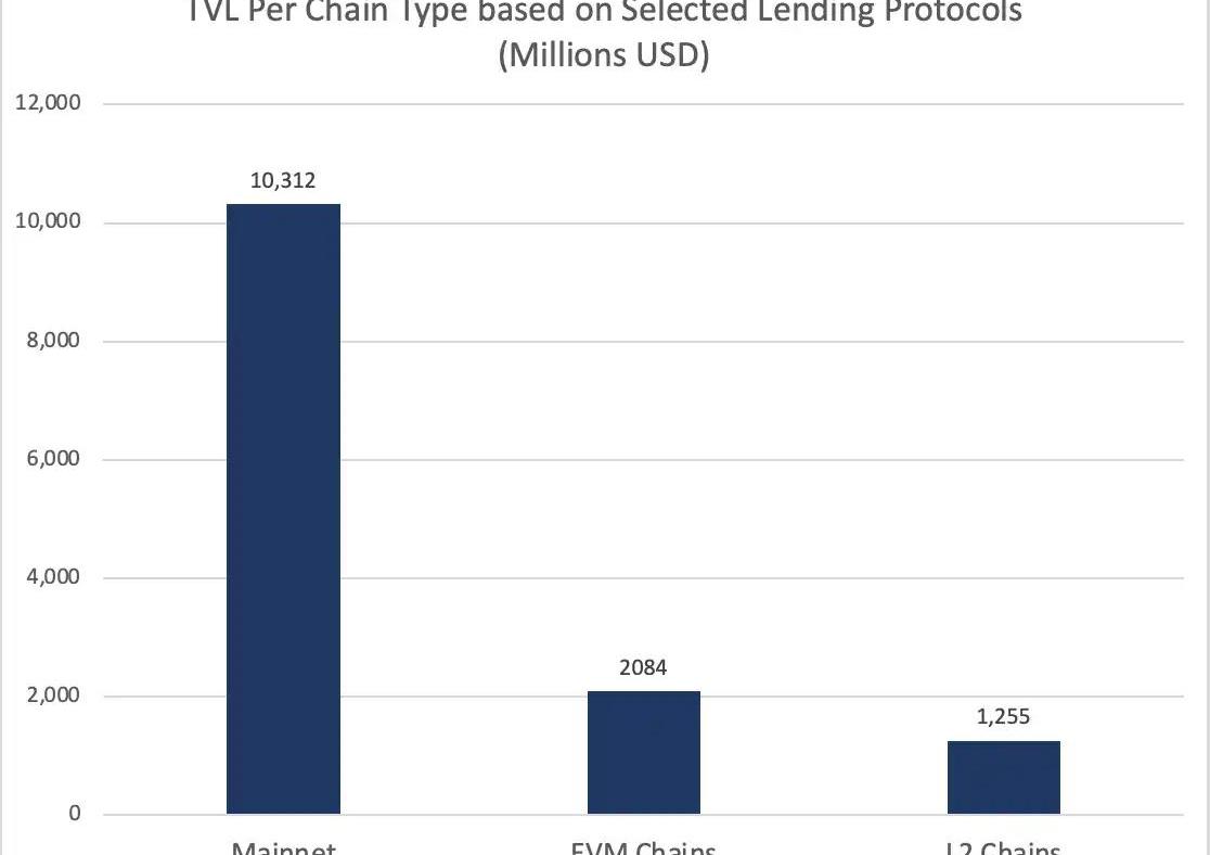 大部分借贷TVL来自主网,但EVM和Layer2正在缓慢侵占市场份额。