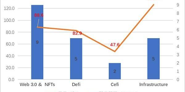 具体赛道方面,Web3.0&NFTs依旧在数量上占优,但Infrastructure以1.26亿美元的融资金额大幅跑赢其他赛道;
