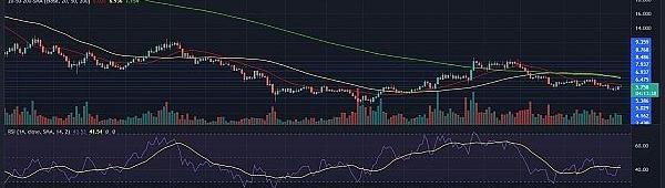 Uniswap价格低于20-SMA线。这意味着看跌代币。这意味着卖家正在推动市场的价格势头。